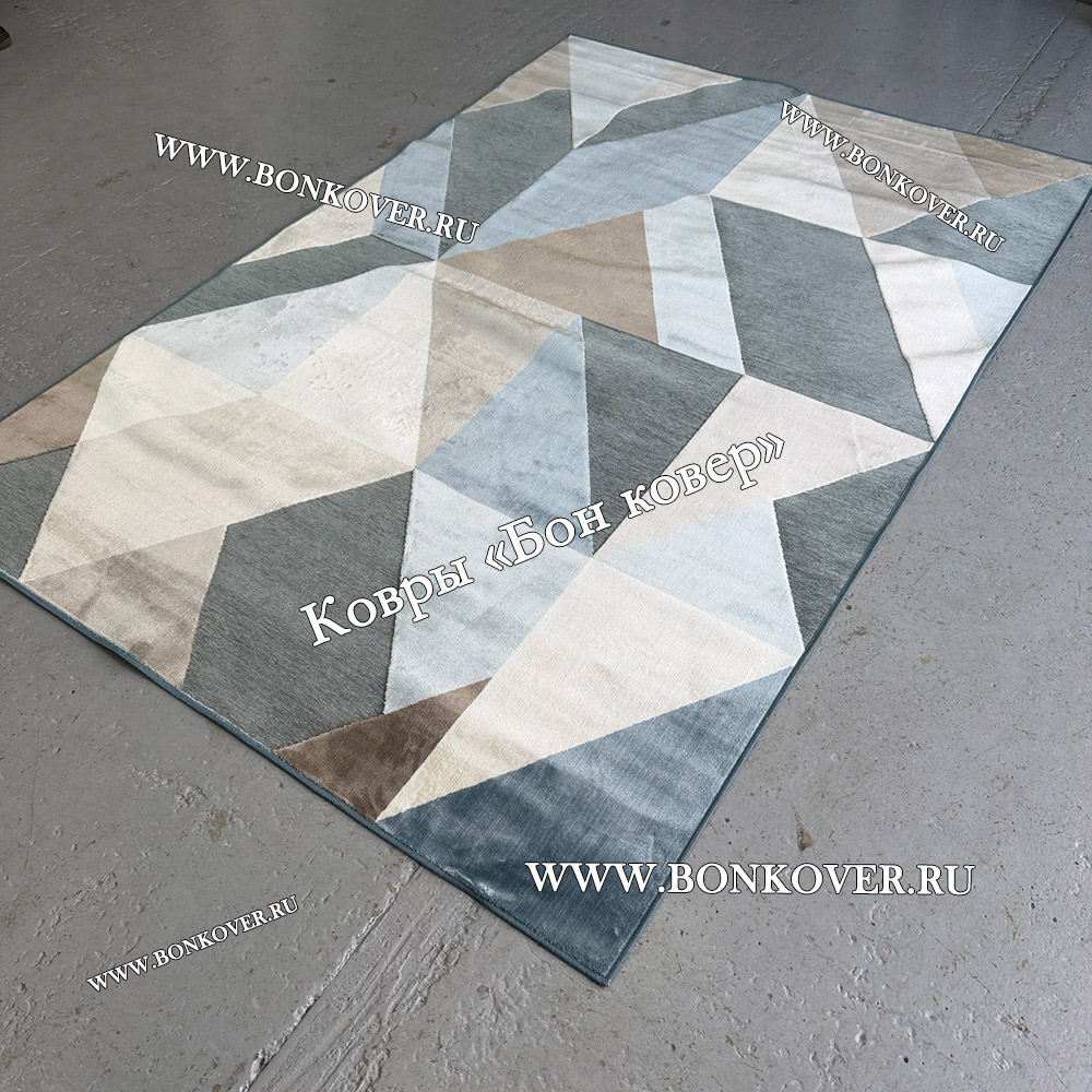 Красивый Геометрический Ковер Из Вискозы Дизайн 21617 наполняет интерьер комнаты теплом и уютом, гармонично сочетает в себе изящество и красоту. Он создан из износостойких материалов, прочный и долговечный.