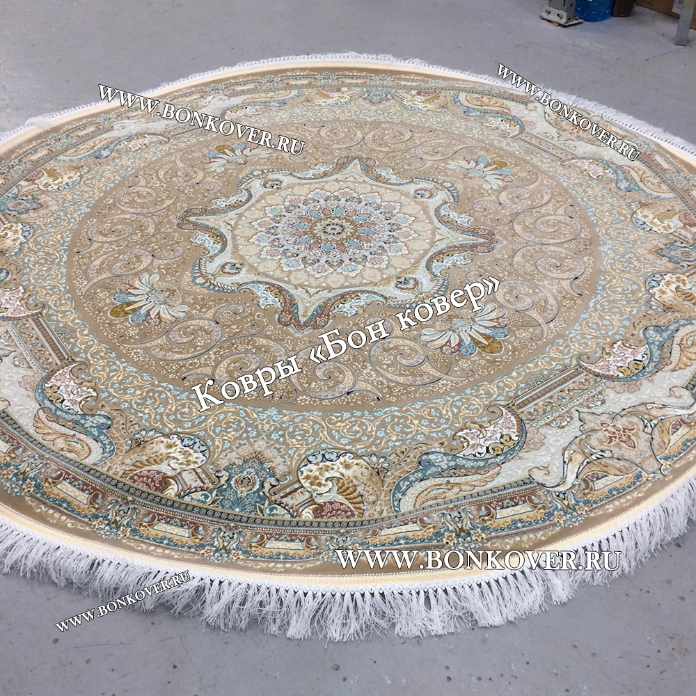 Шикарный Иранский Ковер Для Гостиной Дизайн 30602 Круг наполняет интерьер квартиры теплом и уютом, гармонично сочетает в себе изящество и красоту. Он соткан из современных материалов, прочный и долговечный.